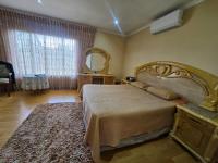 Inside the residence boasts a generous layout with three spacious lounges and two dining room areas ideal for family life and entertaining. These open plan spaces feature modern recessed lighting, air conditioning and a charming fireplace. A dedicated study provides a quiet workspace while an entrance hall adds to the home's functional flow. The functional kitchen offers ample light coloured cabinetry, extensive granite style countertops, an integrated oven and hob and a pantry for additional storage. Five well proportioned bedrooms and three bathrooms, including one onsuite provide comfort and privacy complemented by a convenient guest toilet.
