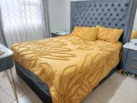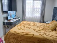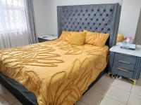 Nestled within the secure estate of Dawn Park in Boksburg, this property offers a tranquil residential setting in South Africa. The estate entrance features a security guardhouse and access gate, ensuring peace of mind. The home itself presents a neat exterior with light-colored walls, a modern tiled roof, and security bars on windows, complemented by security gates for enhanced safety.