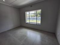 The home offers three well-sized bedrooms, all fitted with built-in cupboards. There are two modern bathrooms, including a full guest bathroom and a main en-suite. A passage cupboard provides additional storage, and the house is tiled throughout for easy maintenance.