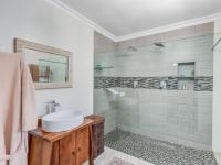 The home offers five spacious bedrooms, all finished with warm laminate wood-look flooring. The accommodation includes a spacious third bathroom off the hallway, a fourth bedroom with its own en-suite bathroom, and an exceptional master suite featuring generous walk-in cupboards and a luxurious en-suite bathroom with a large walk-in shower.