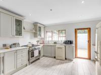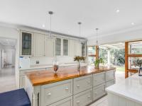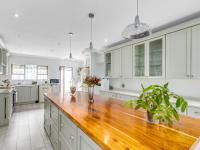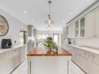 The newly renovated chef’s kitchen is an exceptional centrepiece of the home, featuring a large butcher-block centre island, stone countertops, a gas hob, a prep bowl, and dishwasher space. Designed for both everyday practicality and impressive entertaining, this kitchen combines style with exceptional function.