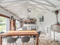 A standout feature is the impressive separate poolside entertainment pavilion, designed for the enthusiastic entertainer. This versatile structure includes glass stack doors, exposed trusses, a built-in braai and bar area, a separate bathroom, and room that can be used in various ways. Just beyond this pavilion, a beautifully designed firepit boma awaits — complete with a convenient gas braai — making it perfect for hosting unforgettable gatherings under the stars. This entire structure also offers excellent flexibility and can easily be repurposed as a cottage if needed.
