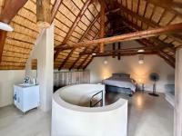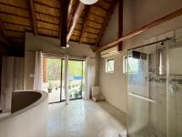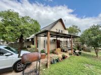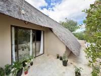Nestled within a secure estate in Hoedspruit, this modern residential sale offers an exceptional blend of contemporary design and comfortable country living. The property boasts an appealing exterior with distinctive thatched roof elements, set on a well-maintained street with mature trees, creating a welcoming first impression. The entrance to the estate, 'Natures Wildlife Escape', is marked by attractive landscaping and robust security.