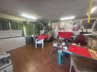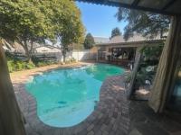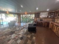 The kitchen is adjacent a stunning and huge entertainment area fitted with a built-in braai, coal stove and built-in bar. The area leads to the outdoor where there a sparkling pool and a workshop area which can also be used as an office or visitors' [hidden];