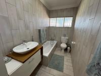 The property features three spacious bedrooms, each with built-in cupboards, providing ample storage and a peaceful retreat. The two bathrooms include a luxurious main ensuite with a shower, basin, and toilet, while the second bathroom offers a bathtub, basin, and toilet ..