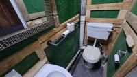 Modern main bedroom with built-in cupboards and en-suite shower with separate toilet.