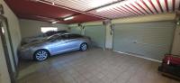 The property includes three open-plan, tiled garages with electrical roll-up doors, providing secure parking for vehicles. Additionally, there are two extra parking spaces available.
