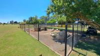 A fenced lodge area with [hidden] high fencing.