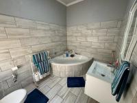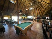 Well-equipped kitchen with built-in cupboards, toilets, storeroom, pool tables, and music system.