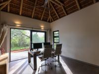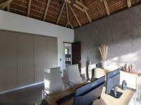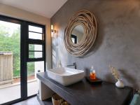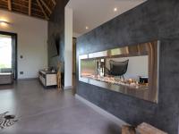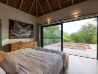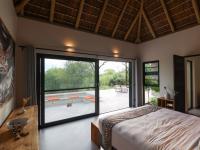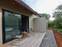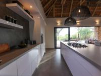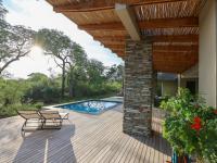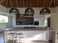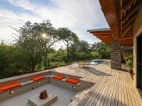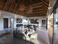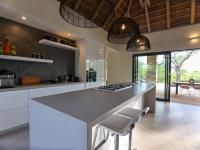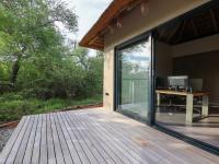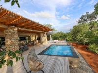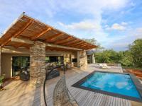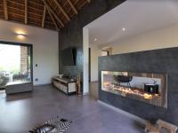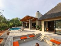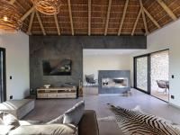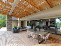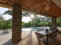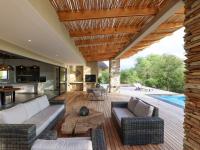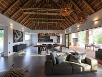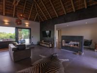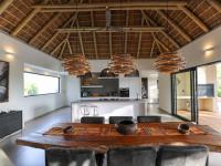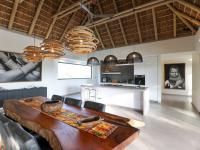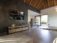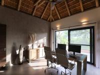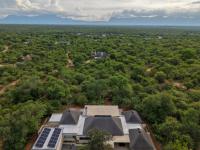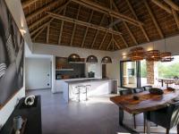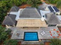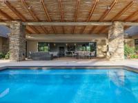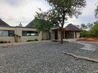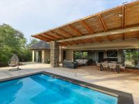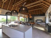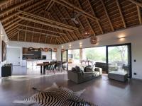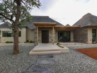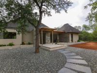 The Home is Sold Fully Furnished. This exceptional 3-bedroom residence, nestled within the prestigious Zandspruit Bush & Aero Estate, offers a harmonious blend of modern design and natural bushveld aesthetics. Characterised by striking thatched roofs, stone pillars, and extensive wood, the property exudes sophisticated safari-style charm, creating an inviting kerb appeal.