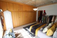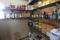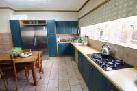 Kitchen with built-in cupboards, eye level oven, gas hob, scullery, laundry, and pantry.