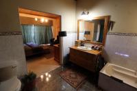 1 en-suite bathroom with a bathtub, washbasin, and toilet.