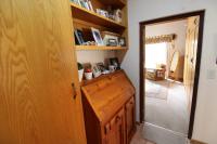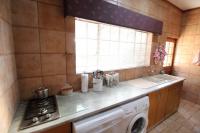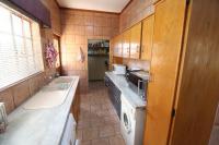 Kitchen with built-in cupboards, eye level oven, gas hob, scullery, and laundry.