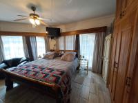 The main bedroom has ample cupboards and an en-suite full bathroom. This room also has a private sunroom with a view to the swimming pool.