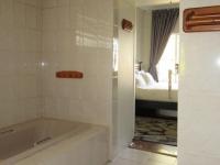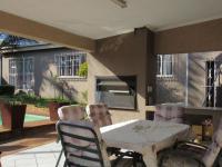 Inside the residence offers generous living spaces including two lounges, a dedicated dining room and a family TV room providing ample room for relaxation and entertainment. The functional kitchen is equipped with cream cabinetry, wooden trim, tiled walls, a built-in double oven, electric hob and extractor fan catering to all culinary needs. A dedicated study provides an ideal space for a home office. The four comfortable bedrooms include one with an on-suite bathroom all featuring hardwood flooring and large windows some with security bars for added safety. The home's layout is designed for practical living with an entrance hall and a wheelch