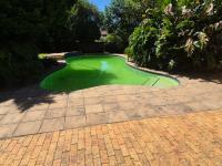 Set on a substantial 1501 sqm erf, the outdoor space is a highlight, boasting a well-maintained garden and extensive paving. The property features a refreshing swimming pool and a lapa, creating an ideal environment for outdoor entertaining and leisure. Parking is abundant with two garages and an additional six open parking spaces, catering to multiple vehicles and guests.