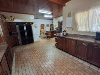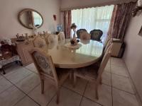 The extra-spacious kitchen is ideal for the avid cook, offering ample built-in cupboards, granite countertops, an electric stove, double eye-level ovens, space for a double fridge, machine connections, and a walk-in pantry. The dining room flows openly from the kitchen, creating an inviting family space.