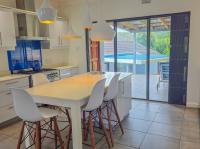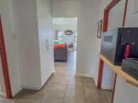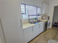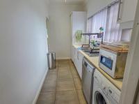 You step into an open plan lounge and kitchen. The lounge offers solid space for everyday living and quiet evenings. The kitchen follows with Ceasarstone counters, a center island, and a prep basin. A separate scullery sits just off the kitchen.