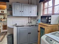 The main house has 3 spacious bedrooms, and 2 bathrooms (one ensuite), 3 fire-places, one in the main bedroom for cold winter nights. The oregon pine floors are in mint condition. An outside braai-room, fitted with a fire-place and built-in bar offers ample space for social gatherings and cozy winter feasts.