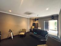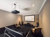 Carpeted Cinema Room/Gym/Recreation room with attached kitchenette and Basin.