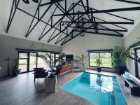 Pool Room with bathroom Indoor heated pool ( solar and heat pump) and a Indoor braai.