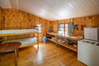 • The two rustic “Bush-Huts” are 4-sleeper self-catering wooden cabins, each with an open plan living area and a bedroom. No electricity – only gas facilities.