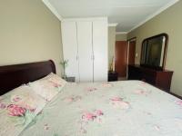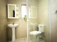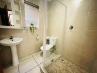 The main en-suite provides the convenience of a private shower, basin, toilet, wall-mounted cupboard, and [hidden];