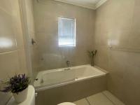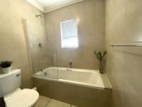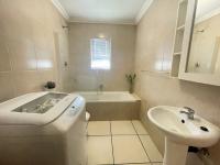 The second bathroom features a bath with an overhead shower and glass divider, basin, toilet, wall-mounted cupboard, and practical space for a washing machine—perfect for day-to-day [hidden];