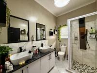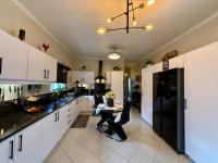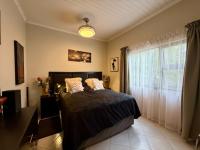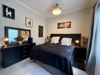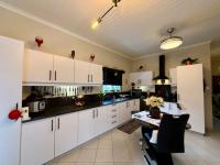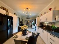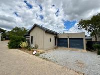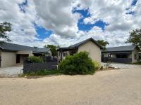 This modern, single-story home in a secure Hoedspruit estate offers a contemporary lifestyle with excellent kerb appeal. Featuring a clean tan exterior, gabled roofs, and well-maintained landscaping, the property presents an inviting first impression. Practicality is ensured with a double garage, complemented by neat gravel driveways and paved access within the complex.