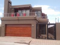 Discover this modern residential sale property in Meadowlands West, Soweto, offering a blend of contemporary design and robust security. The property boasts an attractive earth-toned exterior with a prominent wooden garage door, enhancing its kerb appeal. Security is paramount, featuring electric fencing, security cameras, and a sturdy gated pedestrian entrance, ensuring peace of mind. An inviting upper-level balcony with sleek stainless steel railings provides an ideal outdoor retreat.