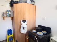 A separate laundry area provides the necessary connections and additional built-in cupboards. From the living room, a door leads to an enclosed stoep and a small private garden area that forms part of the well-maintained communal gardens.