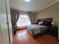 Outdoor living shines with a spacious covered patio and built-in braai, ideal for entertaining. A separate thatched lapa further expands entertainment options. The large garden is perfect for children and pets, while three garages and four additional parking spaces provide extensive vehicle accommodation.
