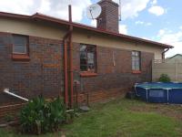 This inviting single-story brick home, located in the vibrant metropolitan and suburban area of South Hills, Johannesburg, presents a welcoming facade. The durable brick exterior is complemented by a well-maintained front lawn and a red metal roof. A paved driveway leads to convenient covered parking for vehicles. The property features a garden and is secured with burglar bars on windows and an access gate, enhanced by electric fencing for peace of mind.