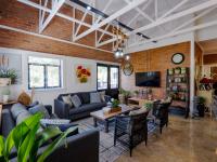 Outdoors, the property truly captivates. An exotic, visually breathtaking garden unfolds like a private sanctuary — a feast for the eyes and a haven for the soul. Thoughtfully designed enclosures provide versatile space for pets, animals, or secure garden use, ideal for vegetables and plant cultivation.