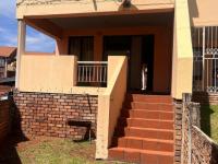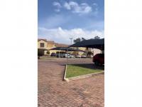 This two-story residence, featuring a classic Spanish tile roof and a light-coloured facade, presents a welcoming exterior within a well-maintained security complex in Mondeor, Johannesburg. The property benefits from paved parking directly in front and a covered patio area, enhanced by security gates for added peace of mind. The overall aesthetic of the complex is consistent and modern, complemented by manicured landscaping and carports providing shaded parking.