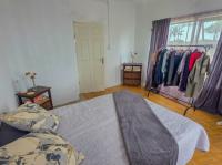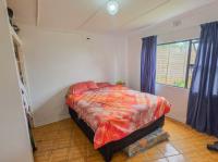 Off the lounge, the first bedroom features tiled floors and sea views. The second bedroom is tiled and includes built in cupboards, offering practical everyday comfort.