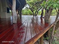 An expansive entertainment deck overlooks a sparkling pool and delivers uninterrupted views of the African bush-an idyllic setting for relaxation, entertaining, or guest experiences. This 174sqm deck has been recently refurbished with durable Massaranduba, a dense South American hardwood, prized for its exceptional longevity and its natural resistance to rot, decay and insects-making it an ideal choice for outdoor decking. There is no lack of attention to detail and maintenance upkeep in this beautiful dwelling!