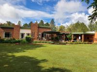 Outdoors, you’ll find multiple entertainment areas including a covered patio, open entertainment spaces, a built-in braai, a sunny deck, and a charming pond nestled within the garden. The property also offers stables, making it ideal for horse lovers or those seeking a true country lifestyle. Pets are welcome, adding to the appeal of this family-friendly home.