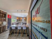 Downstairs, the home impresses with a beautifully modern open-plan kitchen flowing seamlessly into the dining and lounge areas. A well-positioned braai room enhances the entertainment appeal and opens onto a spacious yard featuring a seating area, boma, and a Wendy house, perfect for outdoor living.