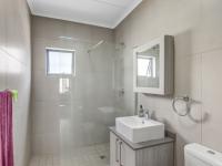 Accommodation includes three well-sized bedrooms, each offering generous built-in cupboard space. The home features a full shared bathroom with a shower, basin, and toilet. The main bedroom offers added luxury with its ensuite bathroom, complete with two basins, a bathtub, and a shower.
