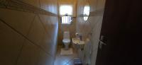 The 3rd bathroom is tiled and has a washbasin and a toilet.