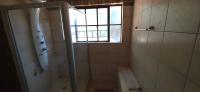 The 4th bathroom is tiled and has a shower, washbasin, and a toilet.