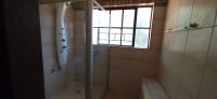The 2nd bathroom is tiled and has a shower and a washbasin.