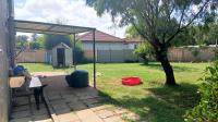 The front yard features a double garage that is separate from family space of the yard. Around the corner you will find a swimming pool with a built-in braai and big patio. There is also a full staff bathroom that is perfect for changing after a swim.