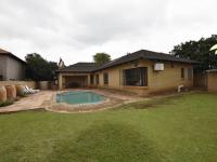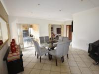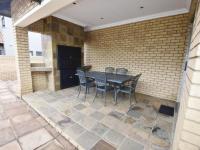 The spacious lounge and dining room flow effortlessly to a covered patio with a built-in braai overlooking a beautifully maintained garden and swimming pool—perfect for relaxed outdoor living and entertaining guests.