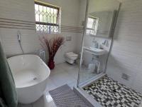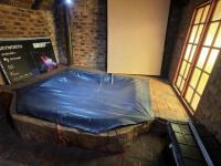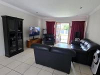 This family home offers 3 bedrooms and 2 bathrooms, kitchen with built-in cupboards, granite counter tops and breakfast nook that is perfect for meals with family, open plan living area leading out to a spacious garden with Lapa, built-in braai and bar, boma for relaxing with friends and a jacuzzi. Enjoy the convenience of two garages and one that goes through to carport for extra parking. Storage, staff quarters and laundry room.