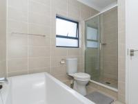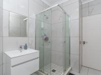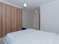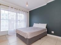 The apartment features two generously sized bedrooms and two modern bathrooms. The main bedroom is exceptionally spacious, offering ample cupboard space and opening onto a private balcony. The en-suite bathroom is fitted with a shower, basin and toilet. The second bedroom is serviced by a full bathroom.
