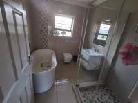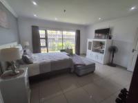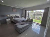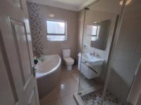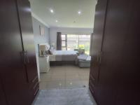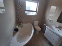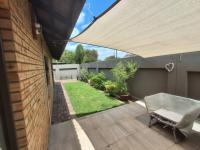 The heart of the home is a modern kitchen boasting light wood grain and glossy cabinetry, white countertops, a mosaic tile backsplash and integrated appliances including a gas hob and oven. A practical scullery/laundry area features two toned cabinetry, a double stainless steel sink, enhancing daily convenience. The residence offers three comfortable bedrooms and two bathrooms including a private onsuite.