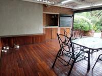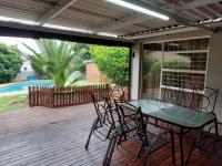 This home offers four spacious bedrooms with built-in wardrobes, tiled flooring and two full luxurious bathrooms of which one is an on-suite to the main bedroom as well as a guest toilet. The stylish kitchen which is the heart of this home comes with a gas stove, granite countertops and a scullery with a washing machine and dishwasher connection. An open plan dining room and one lounge areas that leads onto an enclosed entertainment area with a built-in braai area.