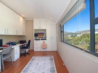 Upstairs, the elevated position showcases sweeping views from all three well-proportioned bedrooms, two of which are en-suite, along with a third family bathroom, an additional living room and a dedicated study with built-in workspace. All bedrooms open onto a wrap-around balcony to maximise the effortless indoor-outdoor flow. Additional features include a direct-access double garage with extra parking, solar panels and water tanks for efficiency, and 24-hour estate security. A truly exceptional home offering lifestyle, luxury and versatility in one of Noordhoek’s most desirable estates.